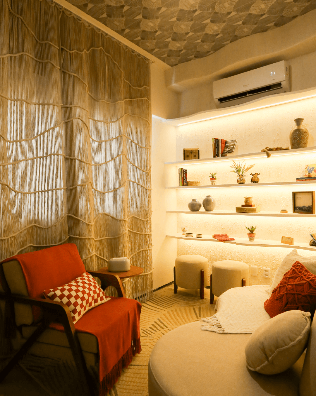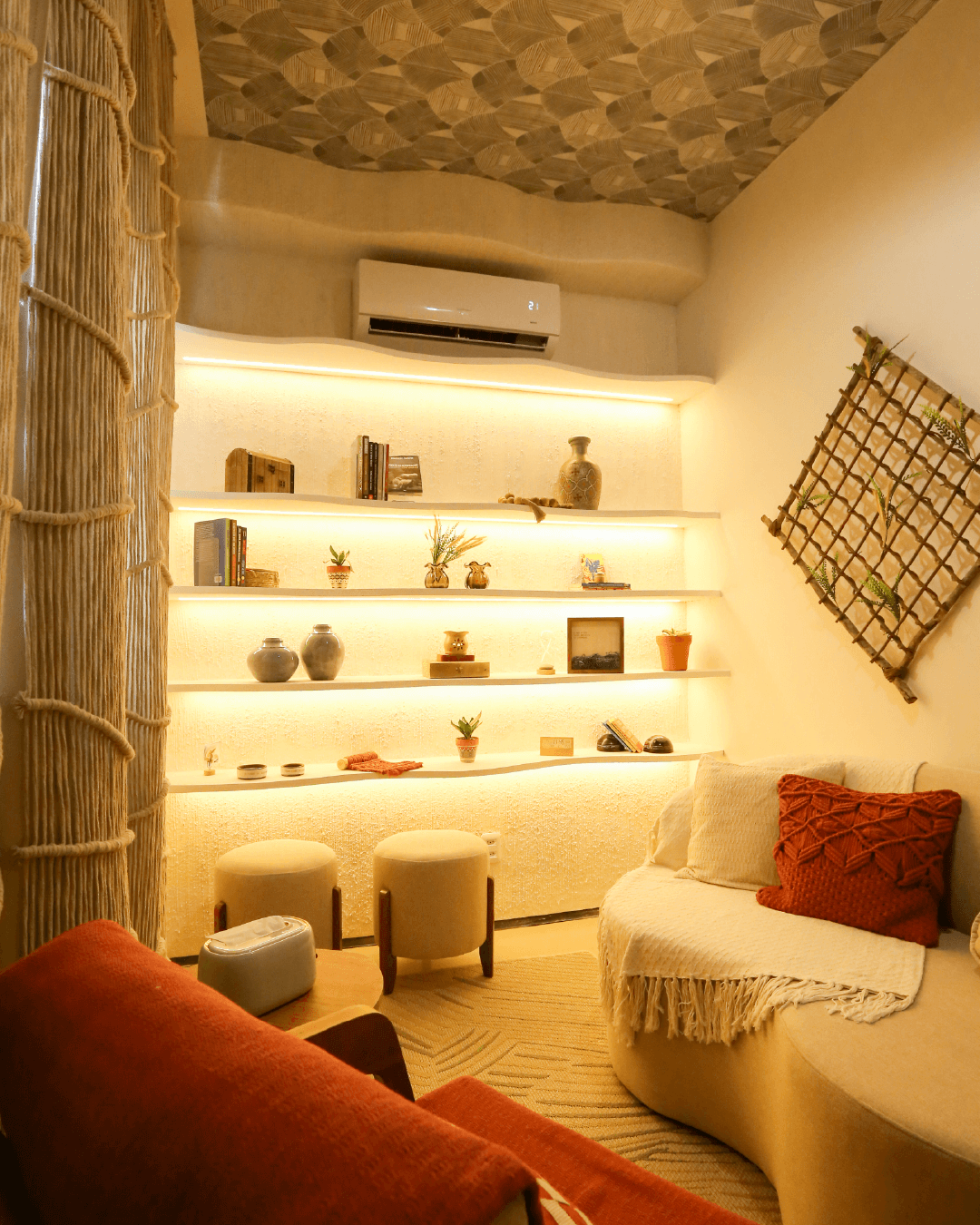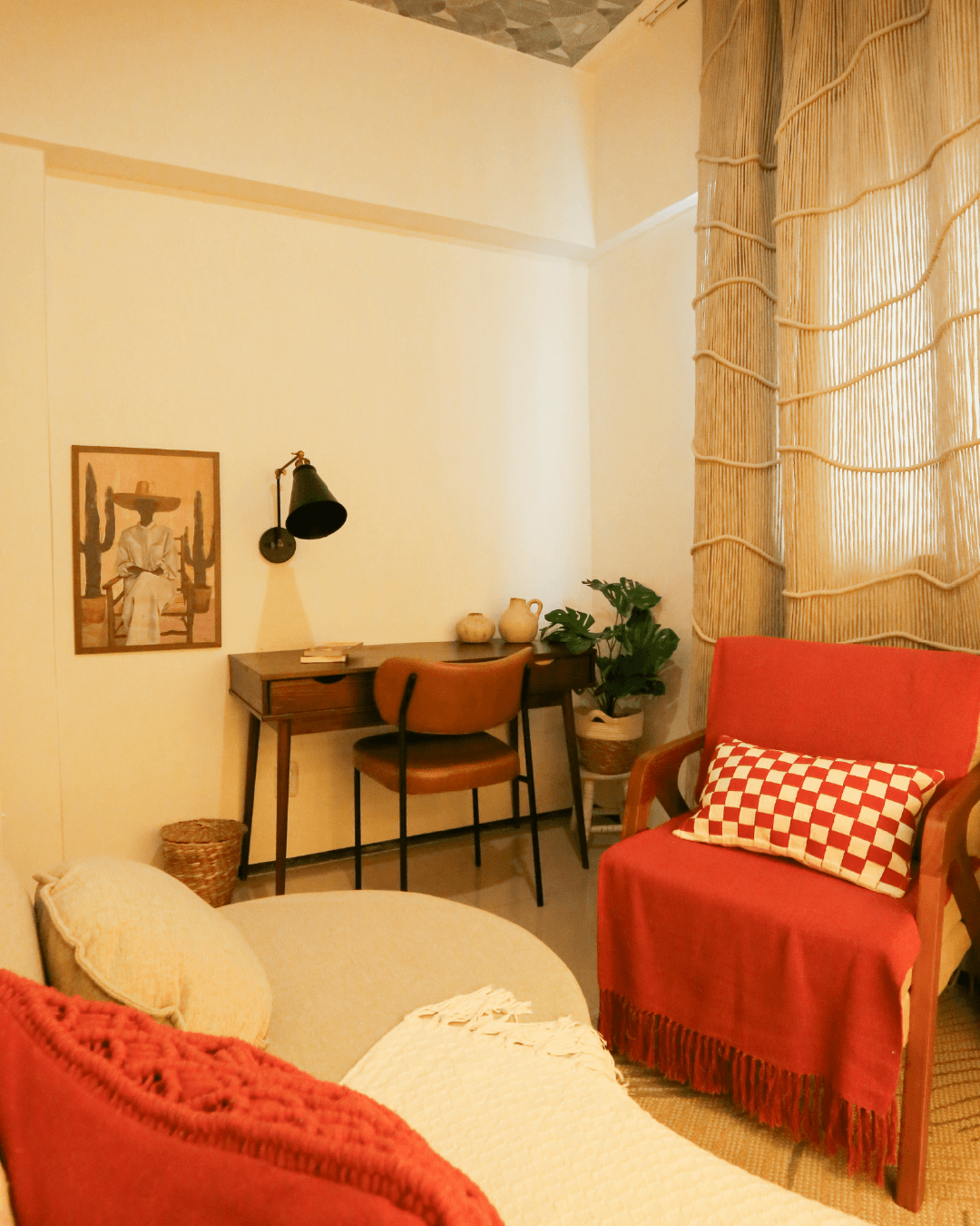 Oferecemos duas salas intimistas e uma recepção acolhedora, prontas para atendimentos individuais, pequenos grupos, encontros terapêuticos, oficinas, ensaios e produções de conteúdo.